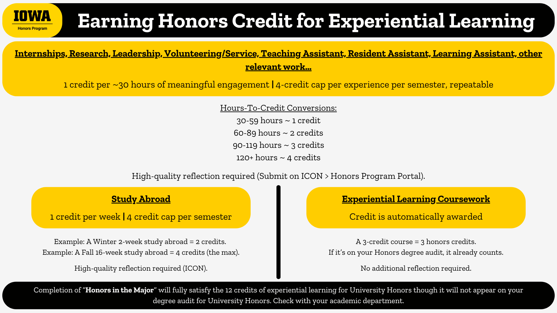 - Email honors-program@uiowa.edu if you have questions about your experiential learning.